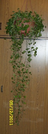а здесь второй год... сейчас плети больше метра (на фото, где дихондра на этажерке стоит, есть металлический метр справа от цветка)... надеюсь, и теперь перезимуем, доживём до весны, а там и до "водопада" рукой подать...