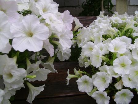 Начитавшись на этом форуме про петуний, второй раз посеяла разных сортов. Первый раз в прошлом году сеяла и они у меня погибли. В этот раз тяжело дались мне, т. к. они у меня ронялись-переворачивались (кошки в доме), сохли (забывала пшикать), были "лезгинки", "половецкие пляски" с бубном, выжили только Петуния СуперКаскадная лососевая и вторая (пока неизвестно кто, упаковки сохранила). Сейчас одна набирается, цветет и вечерами вкусно пахнет, вторая только бутоны набрала. Меня распирает гордость, неналюбуюсь на них. А на фото яркие петуньки, они покупные, купила на базаре и не знаю их название.