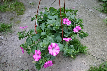 Не знаю почему у вас так, а я своим очень довольна, посадила по одному в подвесные вазоны, щипала беспощадно и кормила азотом постоянно, сейчас цветёт красиво, да и разросся нормально, азотом уже не кормлю, даю всё что есть под рукою.Вчера фоткала, сейчас я на работе, вечером постараюсь скинуть фотки(попрошу детей).