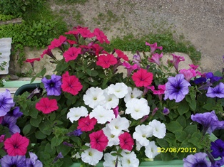 в клумбе на прямом солнце без особых поливов из ампелей, кроме Сильвера, отлично себя показывают Вельвет и Водопад (от РО), опера синяя... эти сорта - отличные выносливые почвопокровники, пышно цветущие до заморозков... хотя они склонны хлорозить к осени...