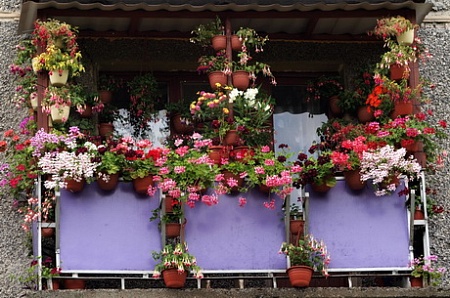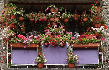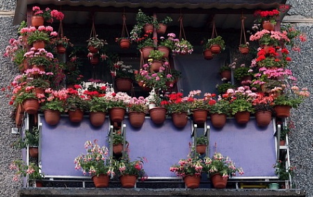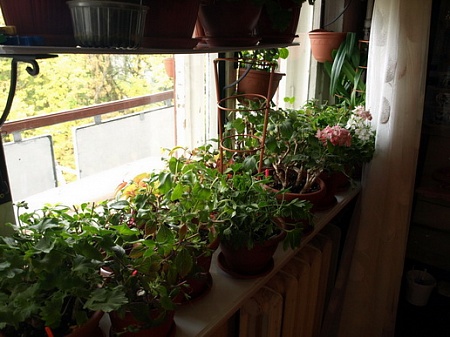 Александра Чеботаева, вот так, примерно. Два окна с пеларгониями - полки сверху донизу, небольшой стеллаж (его видно справа).