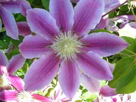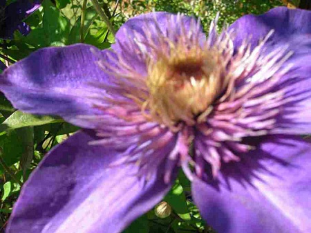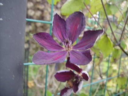 Etoile Violet посажен у западного забора, полное солнце до 15-16 ч, вдоль ленты забора канавка для оттока воды. Hagley Hybrid был пересажен к розам на солнце где попадает под укрытие в том числе от воды. Этой осенью по необходимости пересаживала его, отрастил большие корни и явно розе не мешал.