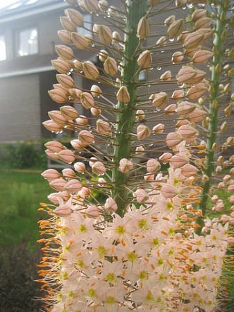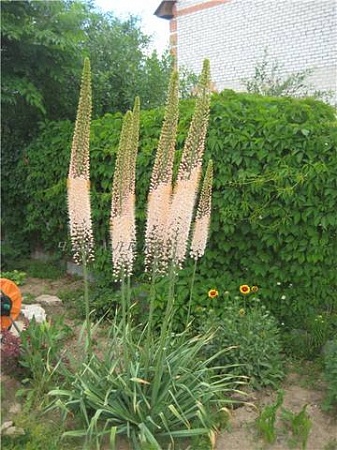 У меня эремурусы высокорослые, цветонос до 2-х метров, уже 13-14 лет любуюсь, ради этой красоты даже не поленилась бы их выкапывать каждый год, если бы потребовалось. Правда у меня только такой-кремовый, люблю высокорослые, к низким эремурусам равнодушна. Как-будто есть ещё белый высокий, но где взять