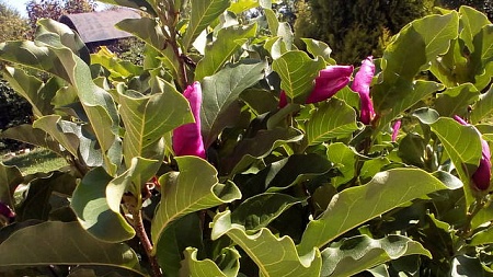 Магнолия красиво оделась листвой и пытается второй раз в этом году цвести.
