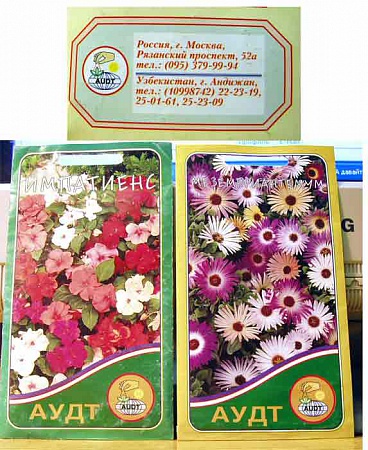 Ура! В ташкент завезли семена. Вчера нарвался на целых 5!!! разных пакетиков. Фирма правда странная, часть пакетиков якобы совместные, как на фото, другие же "универсальные" - на них нет напечатанного названия растения, а на обороте чернильный размазанный штамп. На этих пакетиках крупно написано "Россия. Москва" а снизу мелко - Агропресс. Наверное только пакетики закупают и что в них неизвестно. Кто-нибудь знает такую фирму АУДТ - можно ли им доверять? Правда скупил всех по пакетику - выбор то не велик: Бальзамин,Мезембриантемум, Алиссум морской Бентхама (так написано, но вроде правильнее Бентама), Целлозия Гултожихуроз (не знаю что значит второе слово) и Лаватера. Была еще Циния, но ее не люблю и не купил. Вот и весь выбор. Но хоть отвел душу среди зимы.