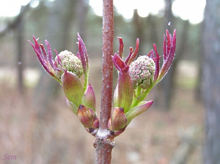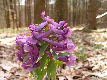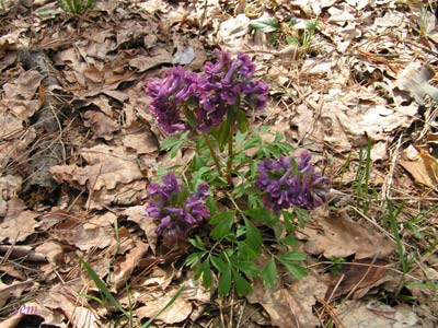 Ты знаешь как зовут ентого гомункула? Кажется это бузина. Может красная. Ниже идет хохлатка. Хоть хватай и беги....