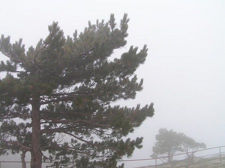 Бросаем Никиту и побережье, и поехали в горы. В частности по любимому туристическому маршруту на самую высокую вершину Крыма Ай-Петри... Оказывается, все предыдущие разы, что я там была,м не крупно везло, и гора радовала прекрасной панорамой и ясной погодой. Этот раз был намного интересней для меня, так как Ай-Петри "словила тучу" и вершина все была вот такая...