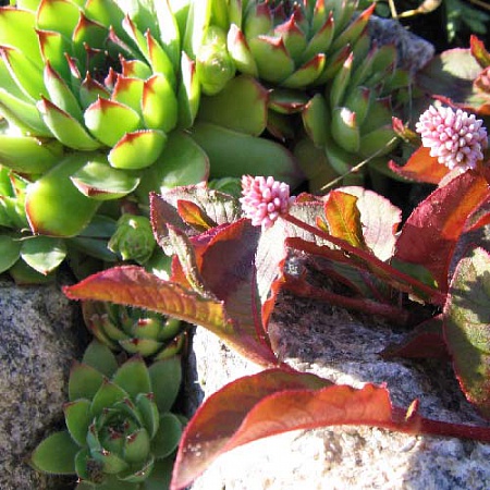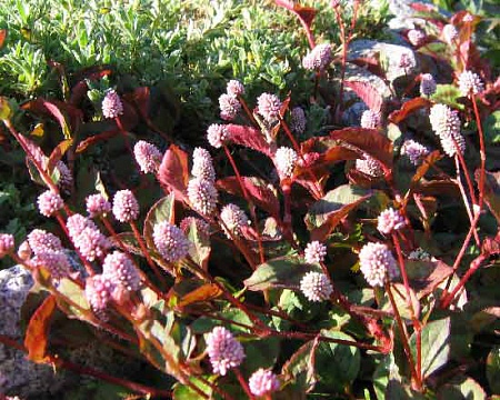 горец головчатый, после перенесенных несчастий, как то обморожение до стеблей, поползновение крота, пересадки из-за этого три раза, взял рекордный темп и уже занял всю отведеннную терреторию. Такие у него цветочки.