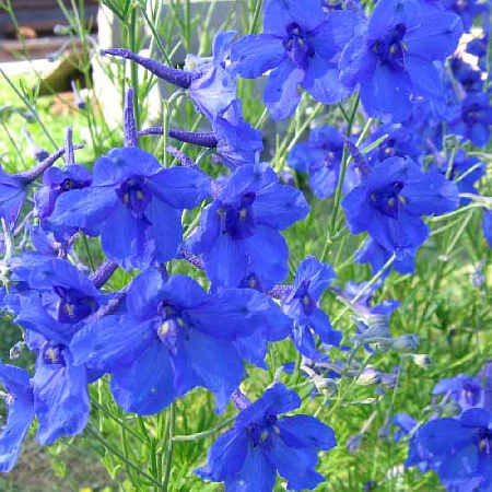 На переднем и заднем плане синеется дельфиниум грандифлора,