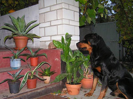 sem, Кажется твой пес очень ответственно относится к охране твоих ухов, то бишь опунций. Заходи в "засушливый сад". Там тебя будут пытать, как ты выращиваешь опунции на клумбах и прочие агавы.