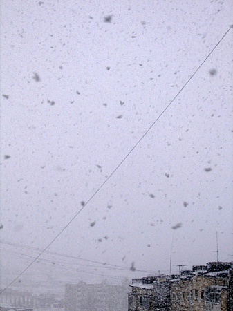 А вот совсем маленький (в размер окна) фрагмент циклона. Снежинок не разглядеть, целые лепехи