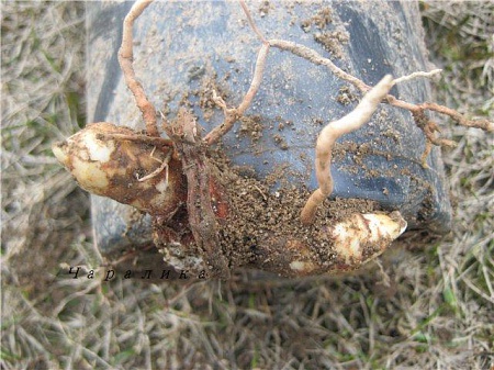 Ну да, сегодня откапала горшок с юккой, там из нижних отверствий торчит вот такое корневище.