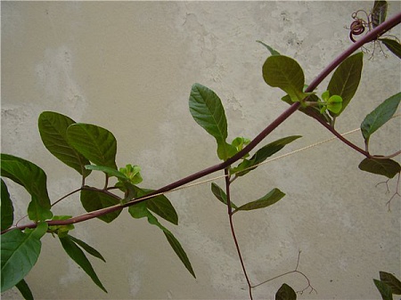Чё-то моя горшечная кобея снизу желтеет и чем-то болеет. И ещё не цепляется за стену,а говорили .... Одно радует,что она вроде как всё таки растёт