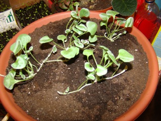 Мои вовсю пускают боковые побеги. Боюсь, опоздал с рассаживанием. Ну, в общем посмотрим. А ещё проклюнулась шестая серебристая, т.е. 100%. У изумрудной - 33%