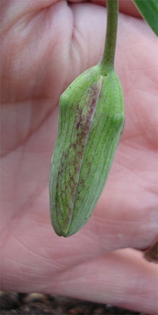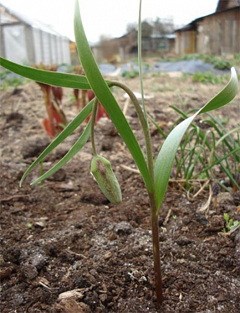 А это рябчик. Я его купила на форуме в прошлом году и он решил порадовать меня цветением. Боюсь не увидеть его цветущим, так кам бываю на даче только по выходным. А увидеть его очень хочется! (Я так кандык цветущим не видела - только бутон).