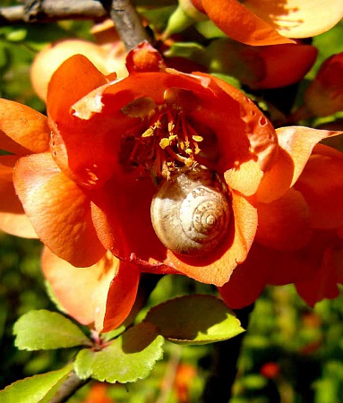 Издалека на форзицию похоже. А эта улитка пчёлкой хочет стать.