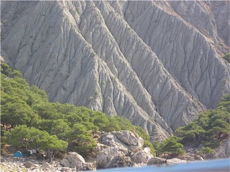 Гора из серой глины, именуемая в народе "осьминог". под ней заросли крымской сосны вреремежку с крымским можжевельником