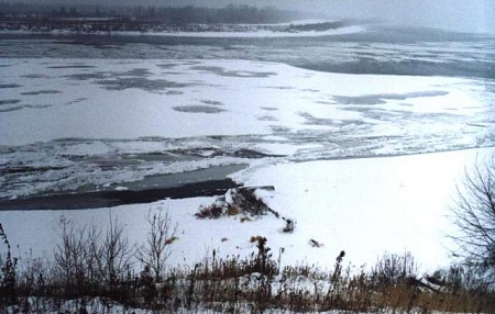 Ещё парочка фотографий реки.Снимал 20 ноября 2010 года. Снегопад снижает контраст! Вода продолжает замерзать...