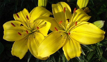 А такие лилии пришли в смеси азиатских от "Русского огорода" На самом деле они чуть бледнее, чем на фото, но очень красивые (у меня их 11 кустов ).