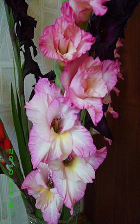А вот и мои гладики в срезке,сильный ураган был вечером,а утром прихожу а они лежат.пришлось домой нести.