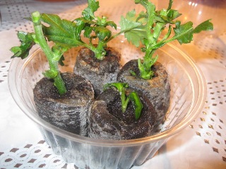 Dianakisss пишет: сегодня оторвала 3 кусочка от хризантемы в горшке, см 6 длиной, один -4 см, посадила в торфяные таблетки, на укоренение, накрыла крышкой, корневина сегодня не оказалось, если куплю завтра - можно развести его и этой водой полить? что еще надо сделать, черенки свежие, очень хочется их укоренить, хотя бы 2 больших, стволы у них - мм 7-8 в диаметре, а третий - тоненький, но они все не одеревеневшие, интересно, они укореняться? может пересадить, в смесь перлита или земли+песок, пока не поздно? выручайте, хелп...