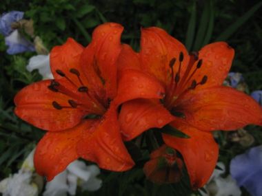 Зацвели ранние лилии. Сорт не знаю, зову "дворняжками". Покупала лет 15 назад у бабушек. Нравятся, что ранние, не требуют ухода и быстро сами расселяются. Каждый год раздаю 2-3 цветущие луковицы. А их меньше не становится. Эти поселились среди ирисов.