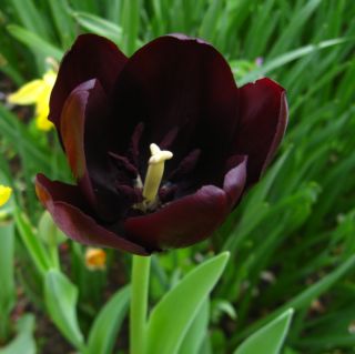 Уходят они на глубину. Луковицы очень трудно найти. Я очень часто, когда потеряшек выкапываю, обламываю листья. Потому что лист сидит в одной стороне, а луковица в другой. И найти ее нет никакой возможности. В результате по всему саду-огороду то тут, то там вылезают тюльпаны. Я бы рада их все собрать, но не получается.