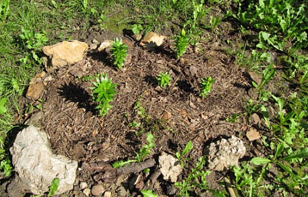 ) Укрыла сосново-лиственным опадом -пускай себе все попы обколют и сюда больше не лезут, паразиты. На двух бутоны уже крупненькие, скорее всего, увидим цветение в этом году.
