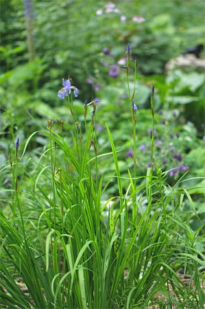 Ирис сибирский, не удаётся застать цветение сразу многих цветков, не разрослись ещё, хотя ботва мне тоже очень-очень нравится. Так не хватает в кадре чего-нибудь жёлтого или белого. (дурацкий сортовой ирис не перезимовал)