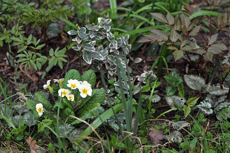Примулы цветут пока только две, зато на первом фото непрополотых сеянцев клёна начитала аж шесть!