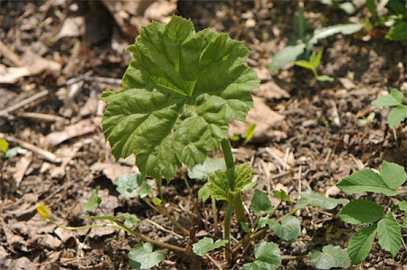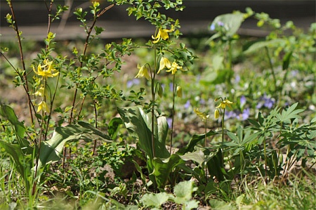 Астильбоидес, посаженный в прошлом году на теневую клумбу (и здесь калужница) тоже нуждается в работе плоскорезом, т.к. всходит вездесущая сныть.