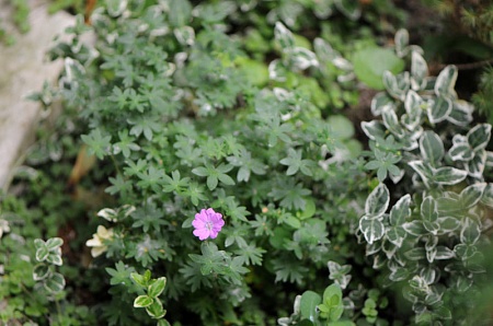 Очень рада, что живёт и даже цветёт геранька. Для лучшего цветения ей нужно более открытое местечко, а у меня заросли. Думаю. Не смогла обойти вниманием красивый кустик тиареллы.