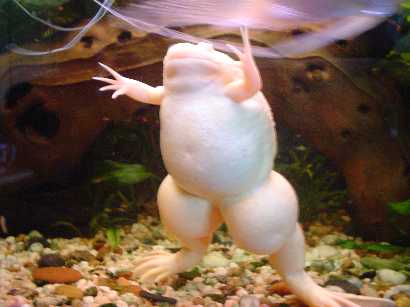 Лягушка.Живет постоянно в аквариуме.Пытается ловить зазевавшихся рыбок.