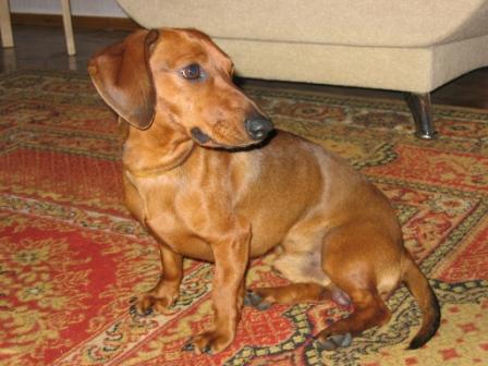 Таксик очень симпатичный.Люблю всех рыжиков.