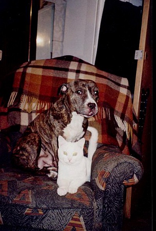 И ещё, конечно, Бакуська воспитывала кота - Патрик теперь себя стаффом считает