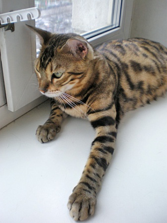 Я покупала Умку в 3,5 мес. Он осторожен с чужими (девушка, которая приходит 1 раз в неделю или чаще, тоже - "чужая") - сидит поодаль и смотрит с любопыством - я так понимаю, что бенгалы, сибиряки, кунчники, британцы, норвежцы