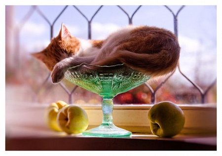 взял шлейку в зубы и с нежным, музыкальным мявом понес ее мне