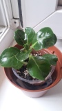 , добрый день! Оно у меня растет года два, цветение не видела. Приобретала маленьким отростком. Бывший владелец ничего о нем рассказать не смог. Предположение пользователя - Coprosma repens. Почитала. Очень похоже. Понравилось второе его название, Зеркальный куст. Действительно листики глянцевые, смотрятся красиво, а вот о цветении пишут что невзрачное и в домашних условиях практически не цветет.