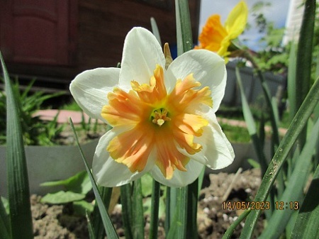 Расцвёл нарцисс, такой вроде не покупала, наверное, пересорт, сколько ни пытаюсь опознать по фоткам и описанию - всё не то. Может, кто-нибудь подскажет.
