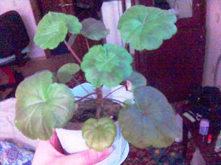 И вообще у меня такое ощущение, что шоколадными разводами покроються скоро все мои гераньки. Вот череночек обычной гераньки, взятый зимой у бабушки.Обычная безродная розовая.А у меня тоже чернеть стала.Бабуля гераньку свою в огород летом сажает, там тоже много солнца- но такого не наблюдалось .