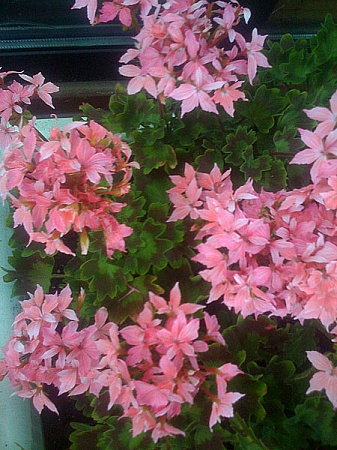 Romashka_new, Да, пофоткала свои пеларгонии и поняла что до "хащей" мне далеко, у меня все по скромному Обрастают после зимовки плюшки, справа в подвесе VDP
