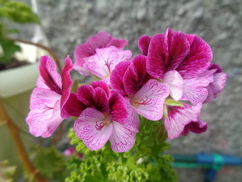 А нам понравилась герань зональная. Информацию о ней нашли на площадке . Это комнатное и неприхотливое растение. Характерно тем, что очень яркие краски листьев и цветов. И еще - очень хорошо очищает воздух от микроорганизмов. На сайте очень подробно написано - как выращивать и ухаживать.