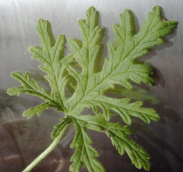 Он совсем не плотный а тонкий и шершавый. Размер - на фото практически в натуральную величину. Но тут сказать сложно, т.к. у меня эта герань затиснута в маленький горшок, т.е. ее в размерах ограничивают искусственно. Что было бы, если предоставить ей большую емкость - не знаю, темпы роста у нее бешенные, наверное, куст был бы приличный. Ну и листья, однозначно, были бы крупнее.