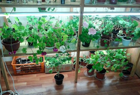 В прошлом году лишились мои пеларгошки светлого северного окна... Теперь зимуем только на стеллаже. (на фото ноябрь, постепенно переезжаем с балкона)