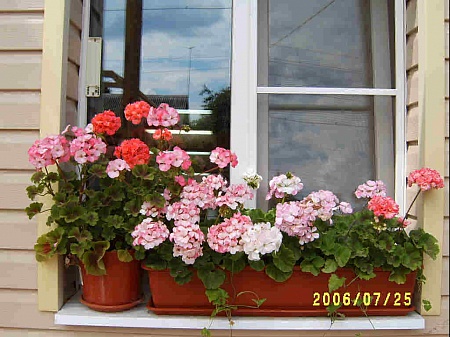 Примите новичка в гераниевом форуме. Люблю их нежно, они напоминают мне о детстве, о любимой бабушке... Девушки, вот если оставить в стороне вопросы коллекционирования, а задаться целью просто сделать на окнах ящики с пышно и обильно цветущими все лето геранями, какие бывают на фотках из заграничной жизни, то как грамотно подойти к этому делу? Есть желание обсудить такую тему? Расскажу о своем опыте. Я прочитала книжку о пеларгониях, вырастила гераньки из семян - Люстра, и НК какие-то. Соблюдая расстояние, поместила горшки в ящики с керамзитом. Южные окна, подкармливала, поливала. Но результат не порадовал. Гераньки пошли вверх, превратившись в палки с отдельными соцветиями, еще и разного роста. Плющелистная (из семян же) выпускала длинные лысоватые плети. Я думаю, во-первых, были неподходящие "сорта". Т.е. сначала нужно выбрать подходящий сорт. Видимо, с этого нужно начать. Я вот в сортах как-то не очень разбираюсь, глаза разбегаются. Посоветуйте, что может подойти.