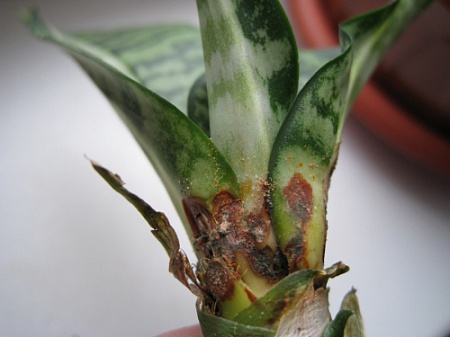 Неизвестная болезнь косит мои сансы (к другим растениям вроде бы не прилипает тьфу-тьфу).Потери уже многочисленные :cry:Розетка просто рассыпается изнутри. Срочно прошу совета у сансоводов: что делать, чем обработать остальные? На фото всё видно.