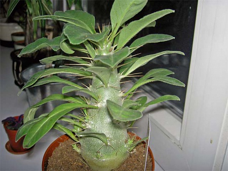 А у меня тоже пахиподиум (правда, чуть другой) любит водичку. Если пить не получает, то сразу же капризничает - листья долой!