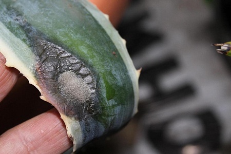 Здравствуйте. У меня долго у окна стояла агава, когда я ее развернула, то обнаружила на листе этот ужас. Подскажите, что с этим делать? Боюсь навредить растению. Могу ли я просто обрезать лист? Заразно ли это, а то рядом стоят другие растения. Буду очень благодарна за помощь.