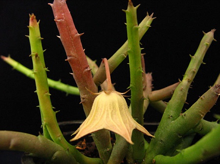 На самом верху столонов появляються черные точки и начинают просто сжирать стебель изнутри.2 года назад было то же на одном столлоне,зимой.Но потом прошло,оставив сухие оспинки.Я думала что застудила ее.Но в этом году вдруг сразу на десяти верхушах...Хотя еще тепло. не ниже + 12,как я ее забрала с улицы.Так что это не от холода.Попробовала срезать поврежденную часть.Даже сок на стебле был черный.Срезала по сантиметру до тех пор(примерно половину)пока сок не стал зеленый.Но все равно через минут 40 срез почернел.