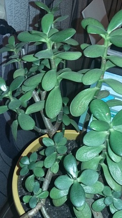 Несколько раз отламывала веточки (укоренила их, выросло много новых толстянок) но первое дерево недолго начинало расти вверх, а потом опять слабеет и вьется вниз.